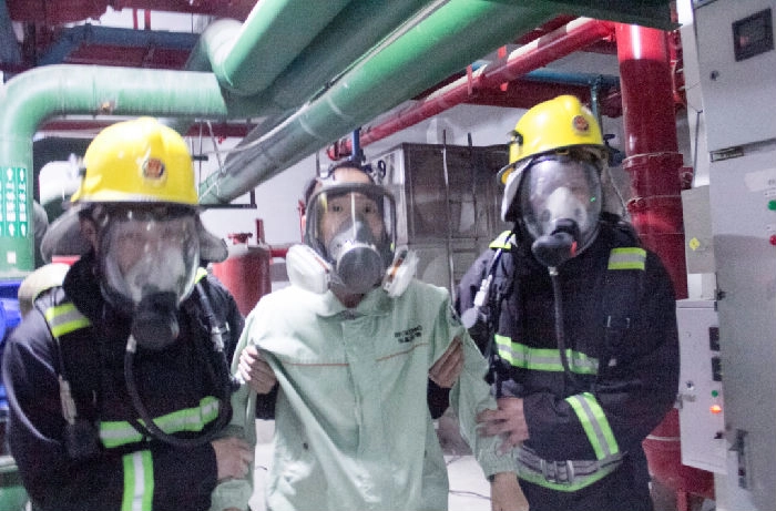 安全管理科贡宇亮组织人员赶往现场,同时带上防护用品(正压空气呼吸器)。