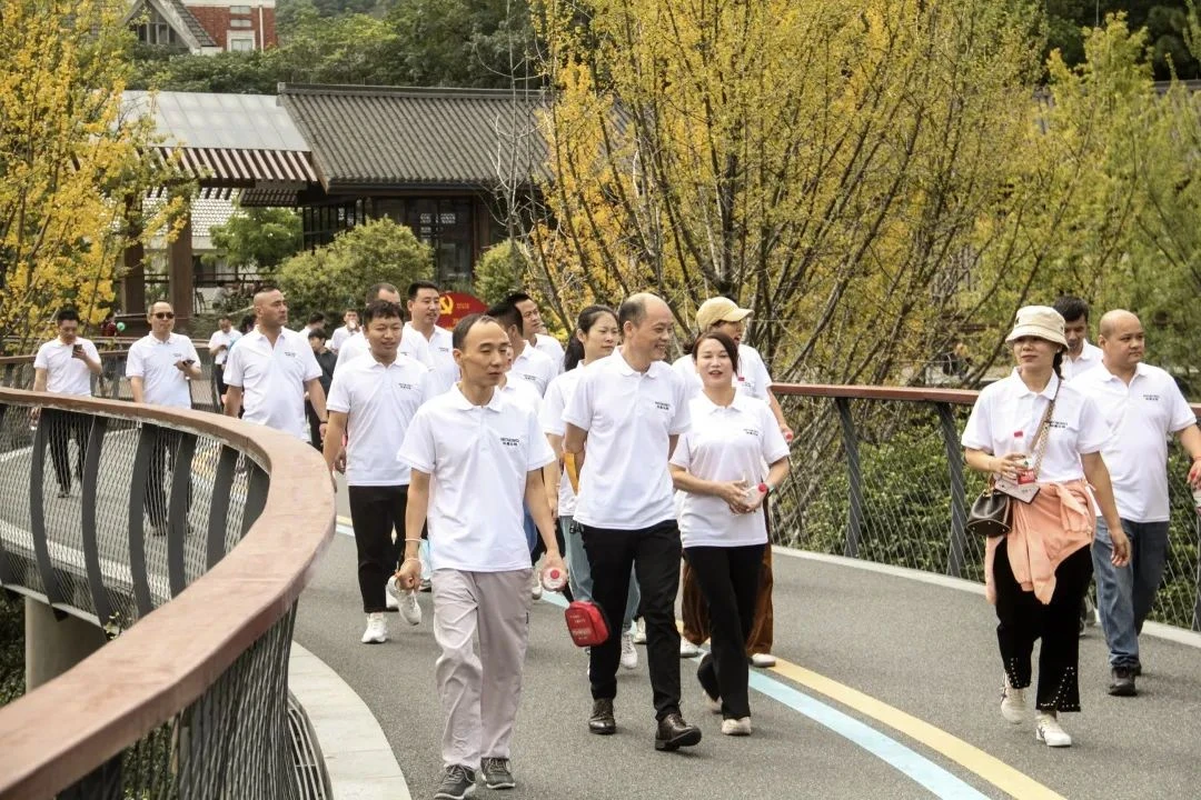 下午2点,张总亲自带领6686体育官网干部开始了下午场的徒步活动。徒步过程中,广大干部精神振奋、士气高昂,克服地形复杂、天气炎热等挑战。尽管不少人出现了腿部酸痛等不适症状,但大家都没有丝毫退却,而是相互鼓劲,一路向前。团结互助是公司一贯提倡的美德,同事中有走得累的,有余力的同事就上前帮忙拉一把,助点力,鼓励鼓励、坚持坚持,在不知不觉中就熬过了那段难行的坡路。过了上坡,便是归途;秋风得意脚步欢快,鸟语花香送我下山。