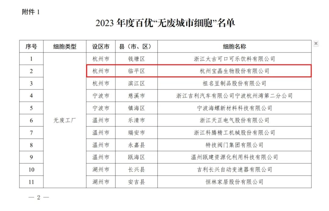 近日,省美丽浙江建设领导小组办公室公布2023年度百优“无废城市细胞”名单,包括无废工厂、工业园区、乡村、学校、医院、景区、饭店、体育场馆、机关、岛屿、油库、社区、乡镇、实验室、加油站、码头、汽车4S店等17大类123个“无废城市细胞”入选。杭州6686体育官网生物股份有限公司成为2023年度临平区唯一一家入选的无废工厂。