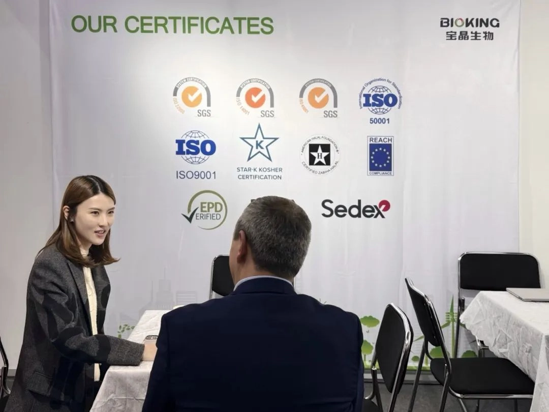 2024年欧洲食品配料/健康天然原料展览会(Fi Europe)于11月19日盛大开幕,本次展会吸引了来自135个国家的25000名参展商与观众。杭州6686体育官网生物股份有限公司以“绿色先行”的主题形象,亮相4.1K32展位,展示了多种食品原料和相关个性化服务。